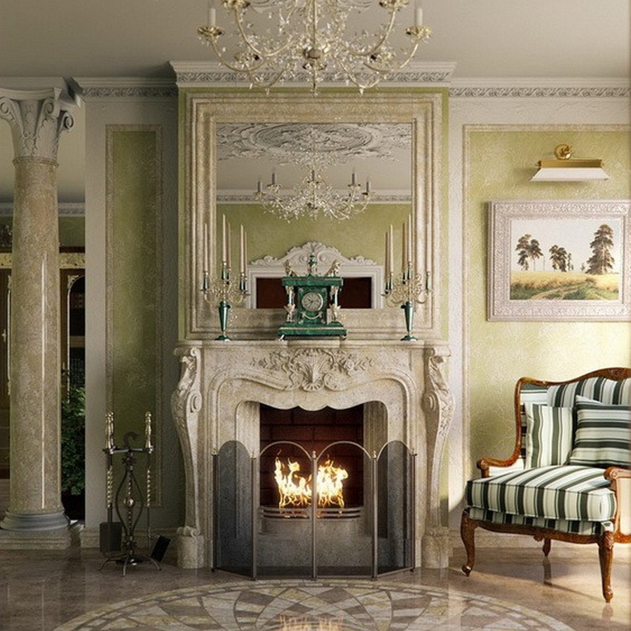 Цей вишуканий камін SOFIYA створений з матеріалу мрамор CREMA MARE . Камін оздоблений різьбою, яка повторює концепцію дизайну вітальні. Колонни каміну вигнуті і верхня частина прикрашена вензелями.