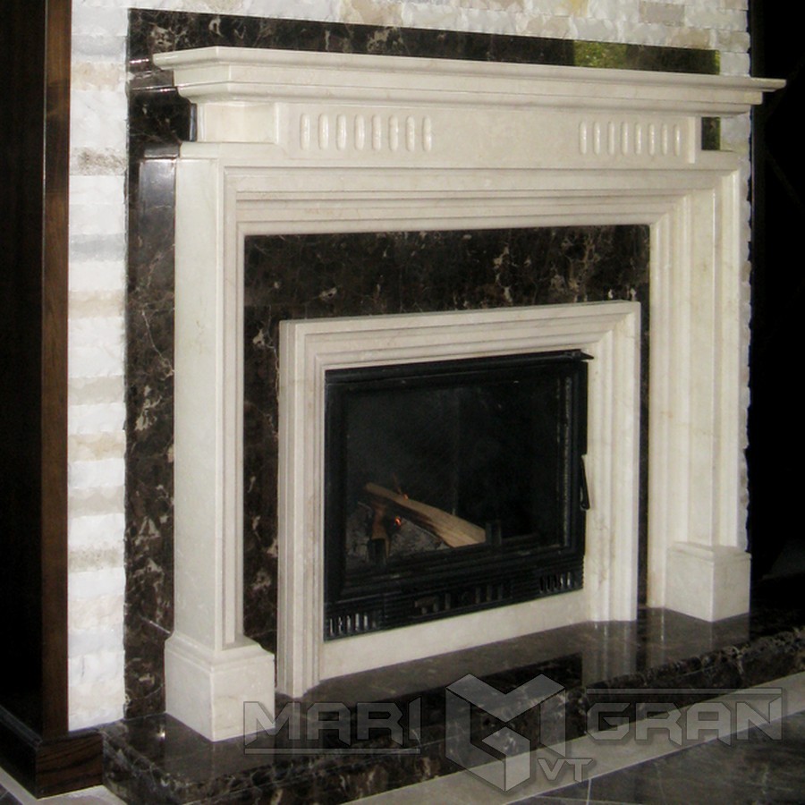 Цей розкішний камін Каріна створений в англійському стилі з мрамору EMPERADOR DARK в поєднанні з мрамором BOTICHINO ROYAL. Верхня частина і бокові стінки каміну оздоблена пиляно-колотою плиткою з мрамору в біло-бежевих тонах. Фон цього каміну та цоколь створюють контраст кольорів за допомогою мрамора EMPERADOR DARK. Колонни та внутрішня углублена рамка камінного порталу виготовленні з мрамору BOTICHINO ROYAL, вони надають об”ємністі виробу. На легкому звуженні композицію завершує кришка камінного порталу ..
